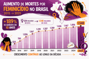 De 2015, quando foram registrados 534 casos, para 2025, houve um crescimento de 189,89%. Ao todo, em uma década, foram 13.474 mulheres mortas por feminicídio. Os números ficam ainda mais alar mantes quando observamos os registros das tentativas de feminicídio.